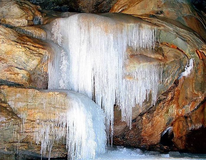 Рис. 8. Ледяные натеки в крымской пещере Трехглазая. Фото с электронного ресурса (https://www.7ways.com.ua/docs/about/emine-bair-koba-trehglazka-cave-krym.html)