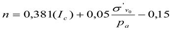 n — показатель степени, непосредственно связанный с типом грунта по SBT;