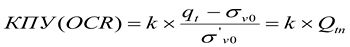 Соответственно по результатам зондирования коэффициент переуплотнения может быть вычислен по следующей формуле: