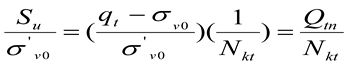 Интерпретация результатов зондирования в тонкозернистых грунтах должна базироваться на представлениях о недренированных условиях работы зонда, соответственно чему для типовой модели грунта используется нормализованное значение лобовых сопротивлений Qt1 (n=1). Однако надо иметь в виду, что в области высокоглинистых грунтов (Ic>2,6) более точны нормализованные модели при n > 1.