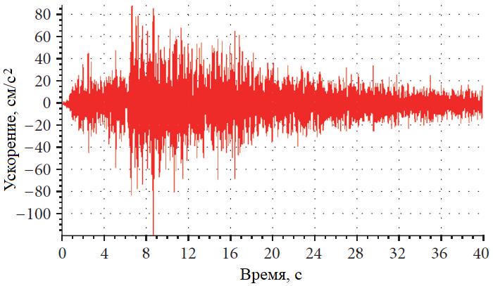 Рис. 10. Входные колебания грунта при землетрясении в штате Вирджиния США (экстремальном)