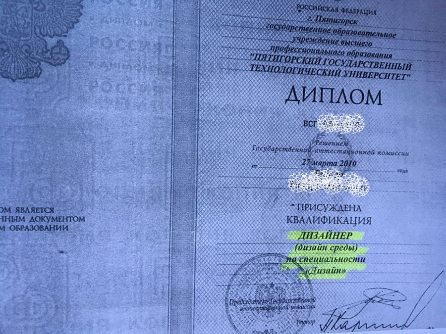Диплом дизайнера (дизайнер среды по специальности «Дизайн»)