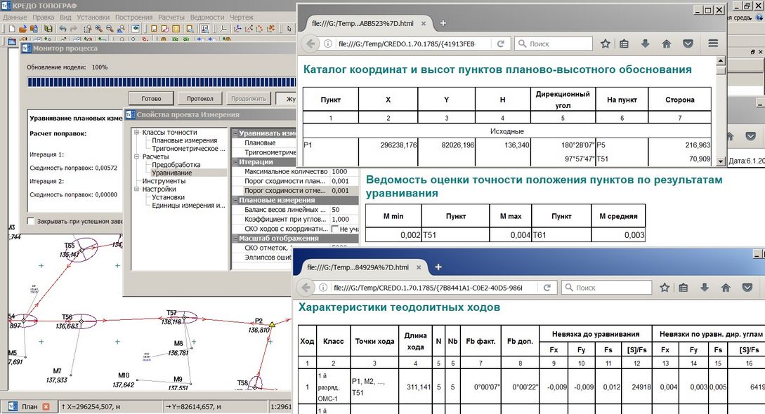 Рис. 3. Результаты уравнивания планово-высотного обоснования (ПВО)