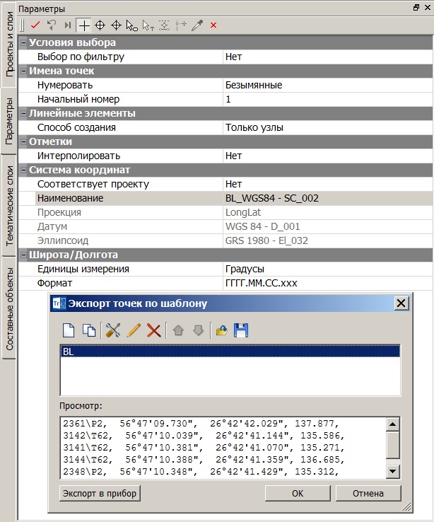 Рис. 9. Системы координат при экспорте в текстовый файл