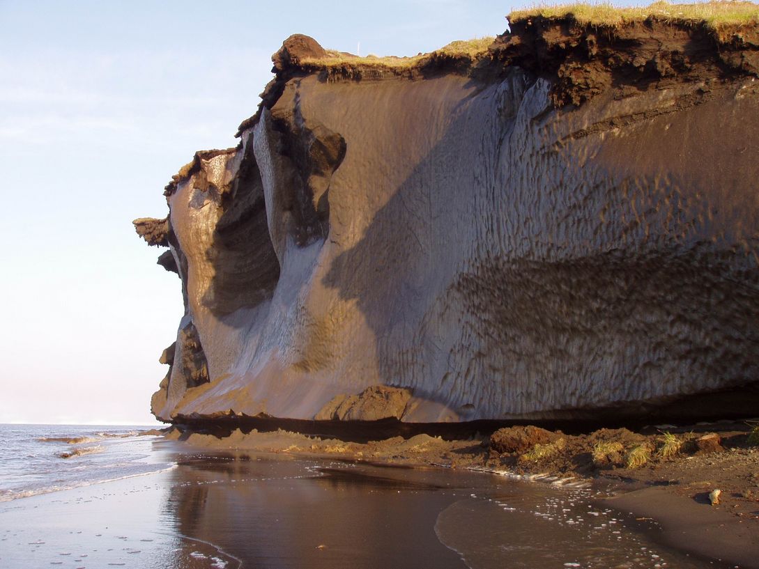 Рис.3. Арктические геосистемы с разрушающимися подземными льдами. Обнажение Ойгосский яр. Фото М.Н.Григорьева