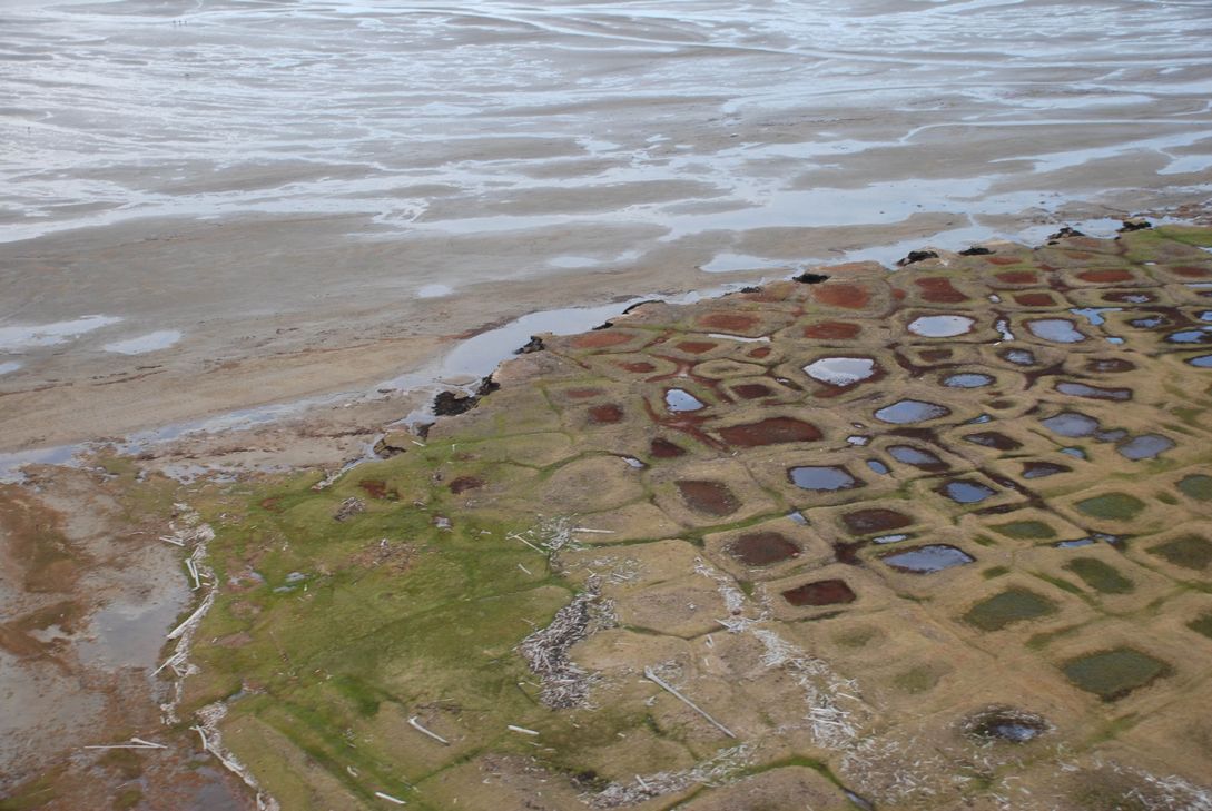 Рис.4. Полигоны повторно-жильных льдов на побережье арктических морей. Фото М.Н.Григорьева