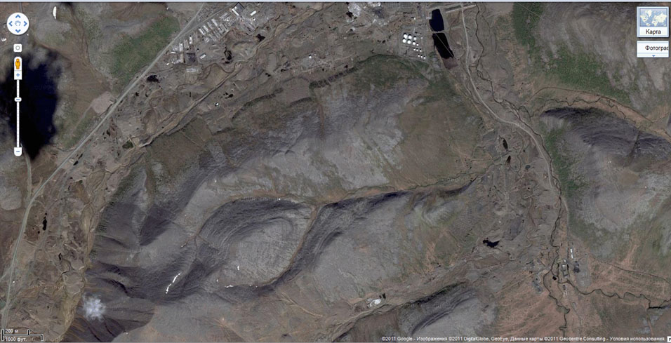 Рис.6. Техногенные геосистемы в районе Депутатского месторождения. Фото из Googlе Earth