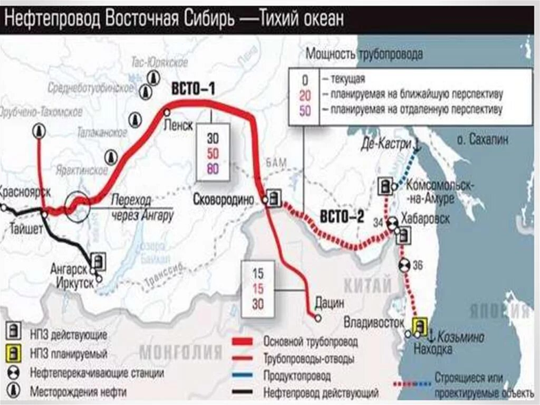Рис. 1. Схема магистрального трубопровода «Транснефть-Восток» [6]