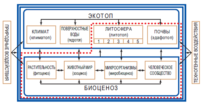 Следует четко представлять, что литосфера (а точнее, земная кора) – внешняя твердая оболочка Земли – является основой всех природных комплексов, она создает необходимые абиотические условия для существования жизни на Земле и является литогенной основой экосистем. Эндогенные и экзогенные геологические процессы, рельеф и геолого-структурные условия развития территории, литолого-петрографический состав пород, неотектонический режим, состав и состояние подземных вод, мощность и режим многолетнемёрзлых пород и т.д. – во многом определяют особенности жизнедеятельности людей (равно как и жизни других организмов) в пределах той или иной территории.