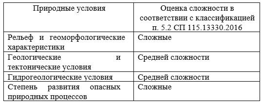 Таблица 3. Оценка сложности природных условий
