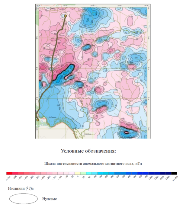 Рис. 14. Схема магнитных аномалий в пределах территории трассы магистрального нефтепровода «Сковородино-Мохэ» (на основе картографических данных [7])