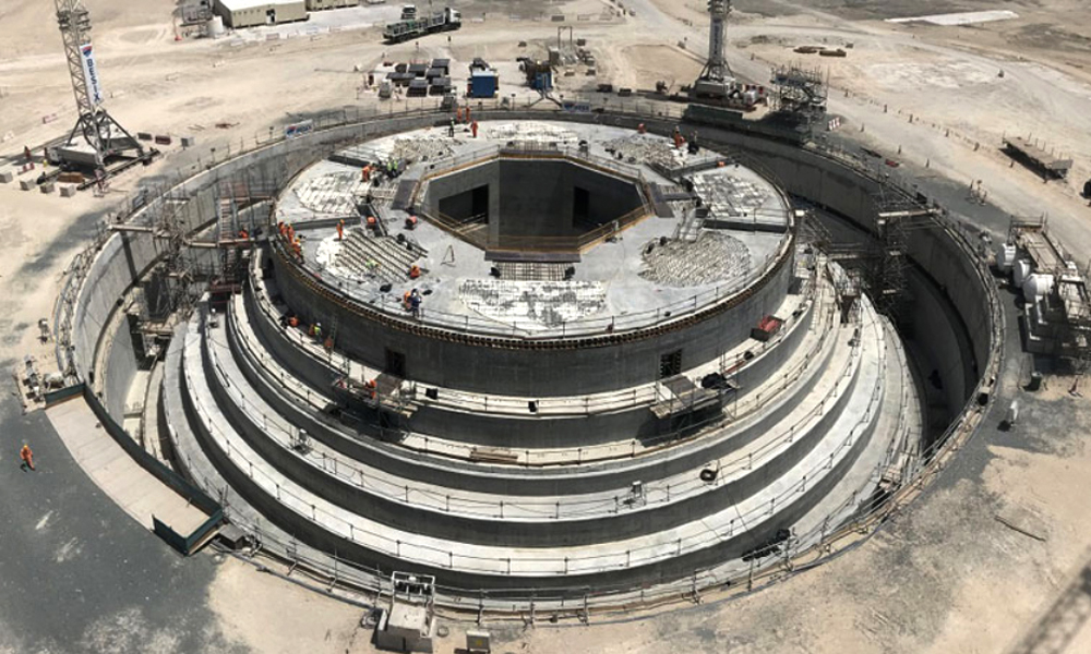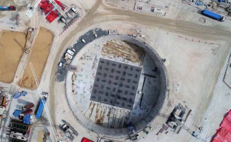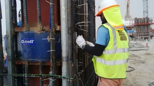Рис. 5. Испытание сваи фундамента башни в Дубай-Крик-Харборе на статическую нагрузку с использованием ячейки Остерберга [5]