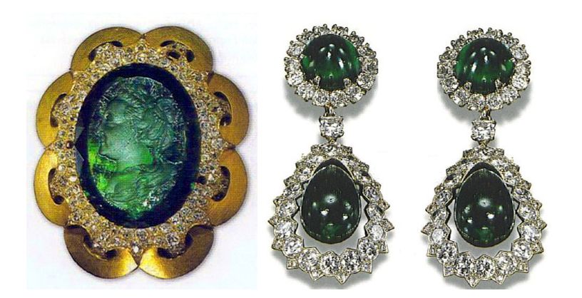 Еще одно название изумрудов – «Зеленый лёд». Они столетиями использовались ювелирами для создания королевских изделий. Например, известно, что Екатерина Великая любила этот камень и имела удивительные серьги с изумрудами в огранке «кабошон». Также из цельного изумруда был изготовлен профиль императрицы (рис. 7).