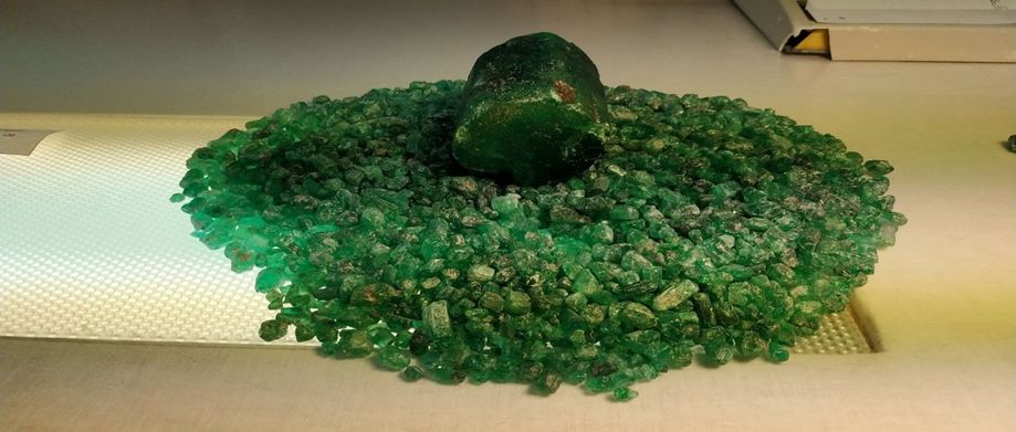 Все находки – настоящая редкость, ведь на одну тонну руды, которую поднимают из шахт и довозят до фабрики, приходится лишь семь грамм изумрудов. Камни сортируют по фракциям, после чего их вручную отбирают специалисты.
