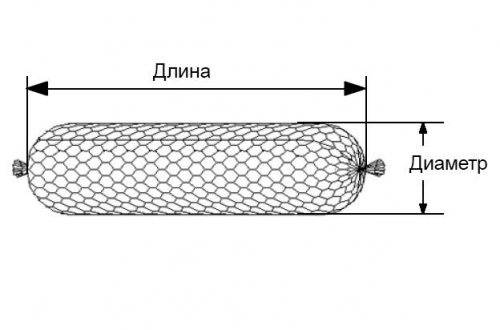 Рис. 3. Цилиндрический габион из стальной сетки, сплетенной из проволоки двойного кручения. Из-за отсутствия ребер жесткости такие габионы являются более гибкими, чем коробчатые [1]