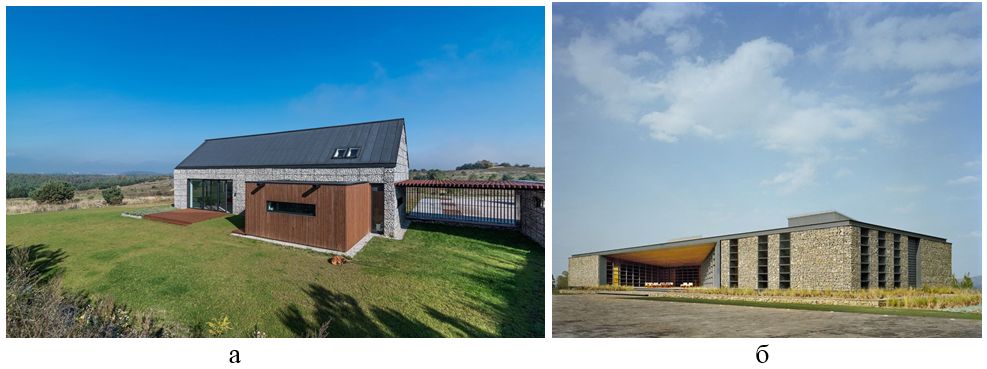 Рис. 11. Использование коробчатых габионов для строительства или облицовки стен невысоких зданий (б) [12]