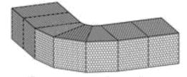 Рис. 18. Применение ряда коробчатых габионов в виде трапециевидных призм при создании криволинейной части ограды или для защиты криволинейного участка склона [1]