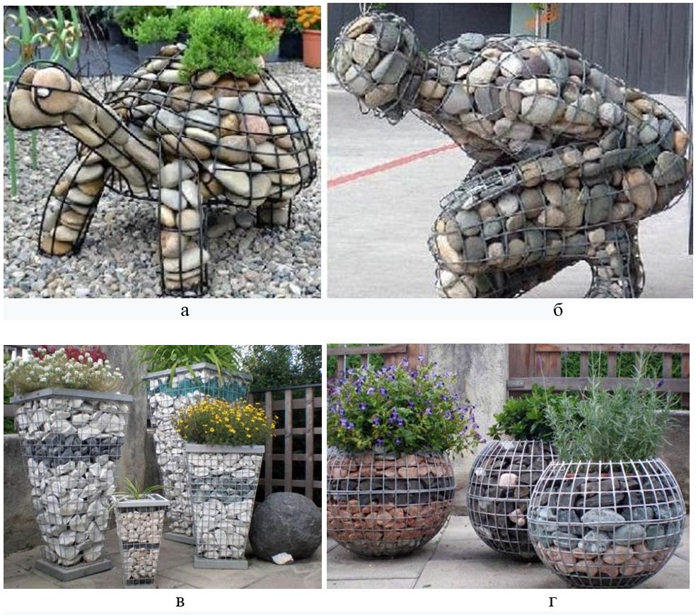 Рис. 19. Примеры необычных форм сварных габионов, используемых в ландшафтном дизайне [6, 10]