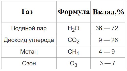 Рис. 9. Основные парниковые газы в порядке их воздействия на тепловой баланс Земли в отсутствие антропогенной деятельности [31]