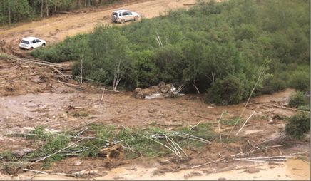 Рис. 7. Последствия схода оползня на одном из склонов долины ручья Кириэстээх (Якутия) в июле 2013 года [20]
