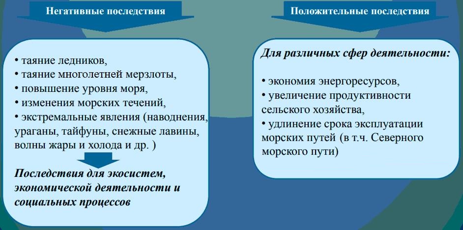 Рис. 1. Некоторые возможные отрицательные и положительные последствия глобального потепления [30]