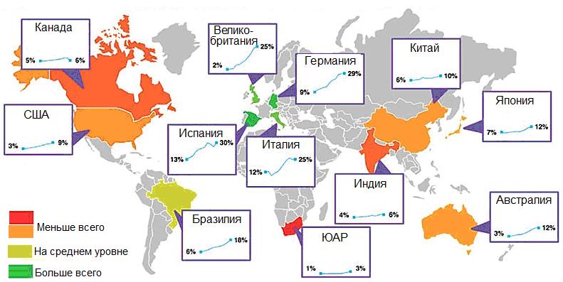 На рисунке 2 продемонстрировано, как быстро в некоторых странах увеличивается производство энергии без выбросов парниковых газов. Да и кто сказал, что для дальнейшего развития цивилизации не нужен переход на новые экологически ответственные технологии, даже если экономические преимущества получат их производители? Хотелось бы, чтобы и Россия наконец более активно подключилась к этому процессу.