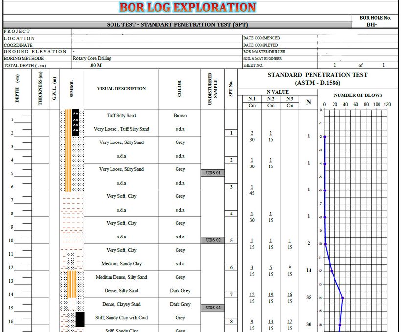 Индонезийский полевой геолог – это, с наших позиций, — техник, который умеет описывать скважины, причем относительно просто, без свойственной нашей научной школе четкости (структура, текстура, включения, консистенция, обводненность, особенности и т.д.), а только тип грунта, цвет, глубина отбора проб. Этот же специалист может составить колонку скважины, выполнить (ну, организовать, выполняет-то группа рабочих) стандартное пенетрационное испытание (SPT) грунтов, а также и статическое зондирование (CPT).