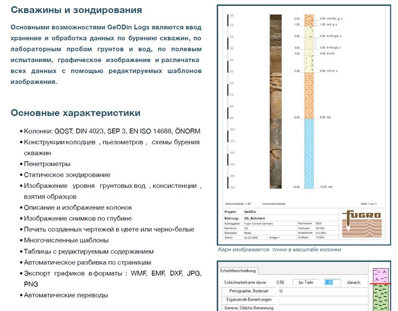 Поэтому после поиска в интернете и чтения статей с описаниями и примерами применения инженерно-геологического ПО, и после согласования этого вопроса с руководством, было принято решение приобрести ПО GeoDin, разработанное фирмой Fugro, которое имеет интерфейс на нескольких языках, среди которых есть и русский.