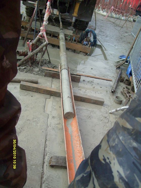 В соответствии с программой дополнительных инженерно-геологических изысканий для получения максимально возможной представительности результатов требовалось произвести сплошной отбор монолитов на всю глубину исследуемой толщи. Опытный пробоотбор вендских отложений двойной колонковой трубой дал лишь 30-40% выход керна, что не отвечало поставленным задачам. В результате пробоотбор осуществлялся одноколонковой трубой, обеспечивающей 90-100% выход керна.