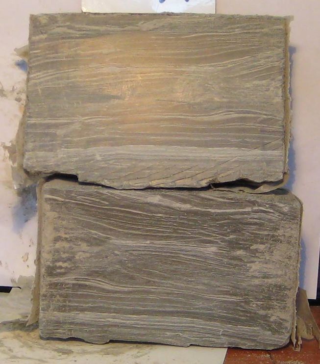 Наличие прямого контакта поверхности монолитов вендских отложений с окружающим глинистым раствором в течение времени их извлечения на поверхность также оказалось несущественным, и касалось оно только самого наружного слоя монолита. Для решения этой проблемы было рекомендовано удалять путем обрезки наиболее увлажненный пятимиллиметровый слой монолита сразу же после извлечения его на поверхность.