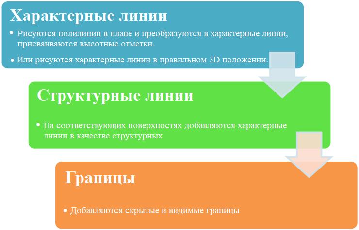 4. Надо убедиться, что характерные линии имеют правильные высотные отметки. Для процесса моделирования важно, чтобы характерные линии имели правильные высотные отметки, хотя позже это можно уточнить и отредактировать.