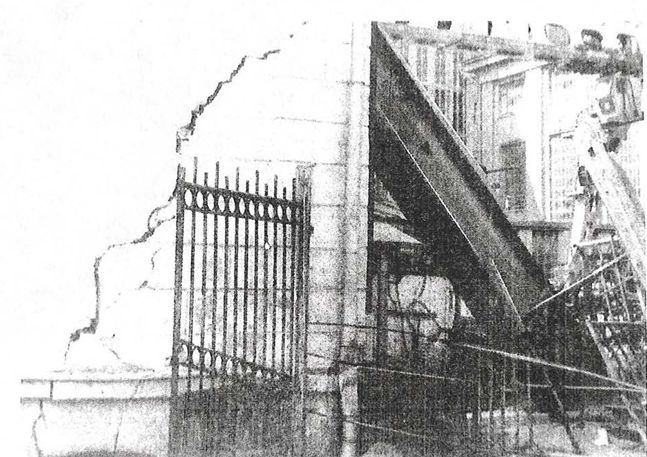 Кроме того, при строительстве котлована, чтобы не повредить примыкающие к строительной площадке здания, была применена технология стена в грунте. Однако в те годы она была крайне несовершенна и не позволяла добиться создания герметичной конструкции, полностью отделяющей полезный объем котлована от геологической среды. Более того, по чьему-то недосмотру подпорные стены в котловане были установлены с опозданием, что привело к прорыву в него плывуна в большом объеме. А это, в свою очередь, привело к значительной разгрузке грунта под правым крылом Дома Пашкова и его значительному проседанию по сравнению с основным зданием. Только молниеносные действия метростроевцев, направленные на устройство поддерживающих правый флигель конструкций, позволили не допустить катастрофу (см. рис.1).
