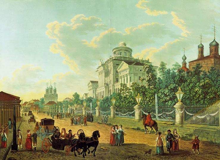 Рис. 5. Вид Моховой и дома Пашкова в Москве, Ж. Делабарт, конец XVIII в. Источник: Википедия