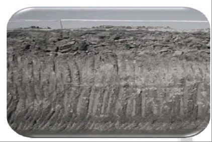 Геологический разрез оказался изменчивым. Он включал разные слои грунтов, которые неравномерно встречались вдоль дороги. Тесты на набухание показали, что в ее основании имелись сильнонабухающие глины, очень чувствительные к изменениям влажности. В рассматриваемом случае проблема возникла из-за попадания сточных вод в эти грунты из располагавшихся вдоль улицы домов. При увлажнении происходило их набухание, а при высыхании – усадка, что привело к неспособности такого основания выдерживать нагрузки от дорожного движения.
