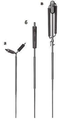 Рис. 5. Термостабилизаторы: а – со сдвоенным наклонным теплоотдающим элементом; б – с одинарным вертикальным теплоотдающим элементом; в – со сдвоенным вертикальным теплоотдающим элементом