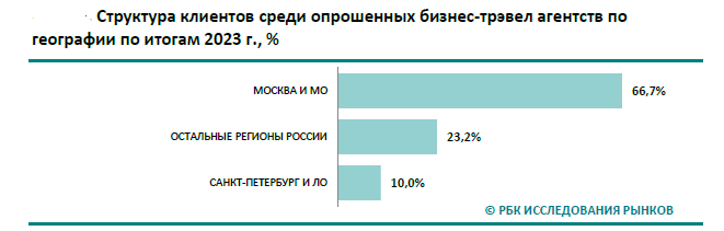 Компании, которые прибегают к помощи бизнес-тревел агентств, сосредоточены в Москве и Московской области, — 67%. Десятая часть заказчиков находится в Санкт-Петербурге.