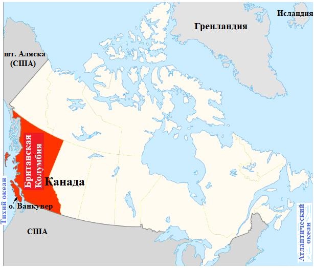 Рис. 2. Расположение провинции Бритианская Колумбия на территории Канады (по [2])