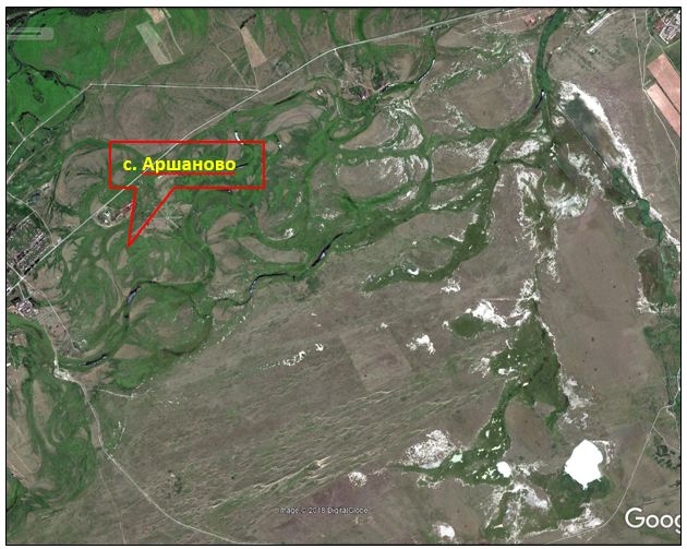 Рис. 2. Снимок из космоса от 21.07.2010 года (GoogleEahtPro) территории участка Аршановский-I до разработки угольного разреза