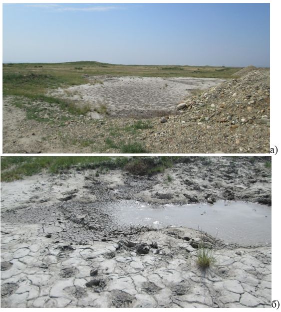 Рис. 5. Закольматированная западина: а) общий вид; б) последняя стадия высыхания участка западины