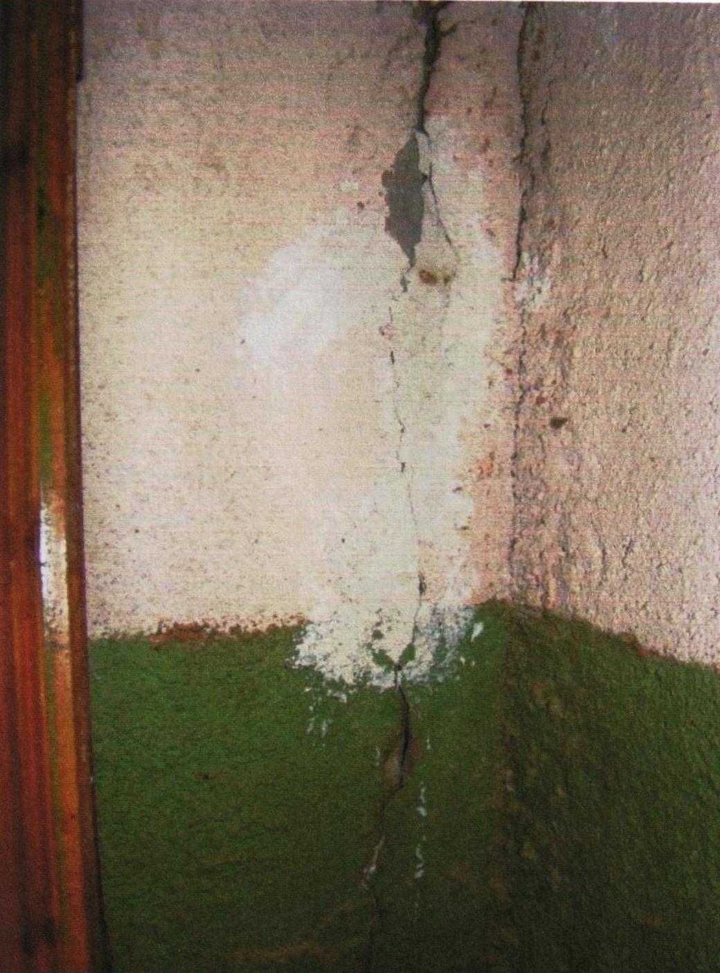 Рис. 3. Трещины в стене и на стыках панелей, проявившиеся сквозь штукатурку и краску