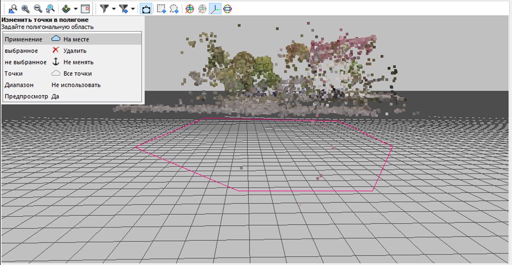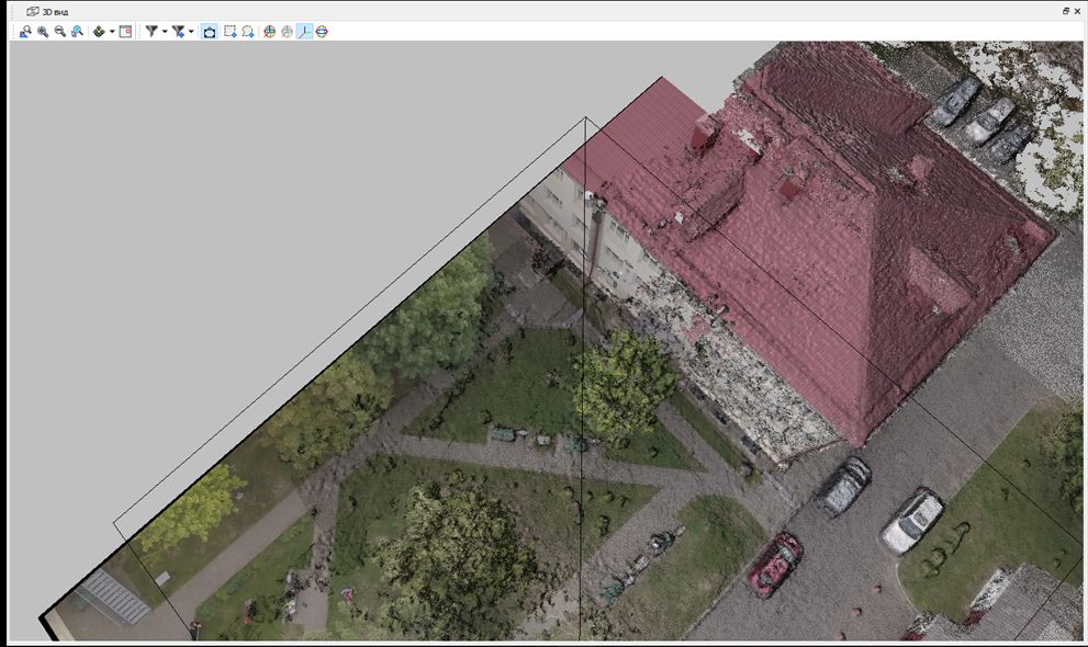 Рис. 3. Режим совмещенного просмотра исходного аэрофотоснимка и облака точек