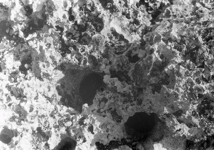 Рис. 2. «Собачьи клыки» и поноры (поглощающие отверстия диаметром до 10–15 см)