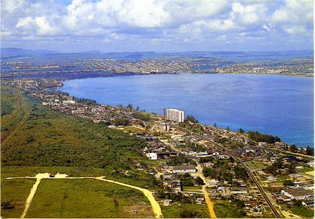 Рис. 3. Матансас – вид с восточной стороны бухты. В центре у горизонта посёлок советских специалистов «Наранхаль» (открытка)