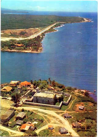 Рис. 3. Устье бухты в Сьенфуэгосе, внизу крепость «Хагуа», справа – Карибское море (открытка)