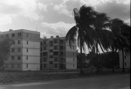 По заведённому обычаю новичков временно, а одиноких – на постоянной основе селили на первых этажах жилых домов, пока не освободится квартира повыше. При этом холостяки, и мужчины, и женщины, никогда не вселялись по одному, только «общежитием». Посёлок советских специалистов Флорес (в Гаване, кроме Флореса, их было несколько: Наутико, Коронелла, Аламар, некоторые специалисты постоянно жили в гостинице Фокс) был застроен типовыми 5-этажными домами. Нам поначалу досталась трёхкомнатная квартира на первом этаже в одном из домов «Эспосос» (супруги), прозванных кубинцами за то, что стояли входами навстречу друг другу, а не «в затылок» (рис. 2). Здесь на первом этаже мы прожили до марта следующего года, затем переселились на третий этаж в соседнем ряду домов (С-3), тоже в 3-комнатную квартиру площадью 65 м2 – больше, чем осталась у нас в Союзе (рис. 3). Что нас удивило – в окнах квартир не было стёкол. Только деревянные жалюзи и противомоскитная сетка: квартира должна круглый год продуваться, поскольку главная проблема здесь не холод, а жара. Занимался нашим расселением Рафаэль Эспиноса – сподвижник Эрнесто че Гевары по второй революционной колонне (первой руководил сам Фидель) при походе от Сантъяго де Куба на Гавану. По-русски он совершенно не говорил, а для нас испанский был как снег на голову, поэтому первое время объяснялись с ним жестами, но позже, когда мы освоили слова первой необходимости, проблем общения не стало, да и в целом проблем не было.