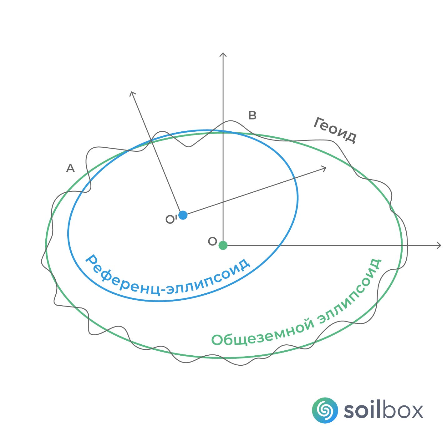 Если центр эллипсоида вращения совпадает с центром масс Земли, плоскость экватора эллипсоида совпадает с плоскостью земного экватора, а суммы квадратов уклонений по высоте геоида 1 от поверхности эллипсоида во всех его точках минимальны, то такая система является геоцентрической, а эллипсоид называется общим земным эллипсоидом (ГСК-2011, ПЗ-90.11, ITRS, WGS-84 [2]). (Напомним, что геоид – это близкое к реальности представление физической формы Земли без учета особенностей рельефа, представляющее собой выпуклую замкнутую поверхность. Эта поверхность приблизительно соответствует среднему уровню вод Мирового океана в состоянии покоя, а также условно продолжается под континентами. При этом в каждой его точке направление силы тяжести перпендикулярно его поверхности.)