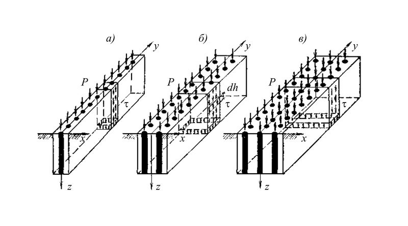 При анализе закономерностей передачи нагрузки сваями грунтам основания установлены следующие зависимости: