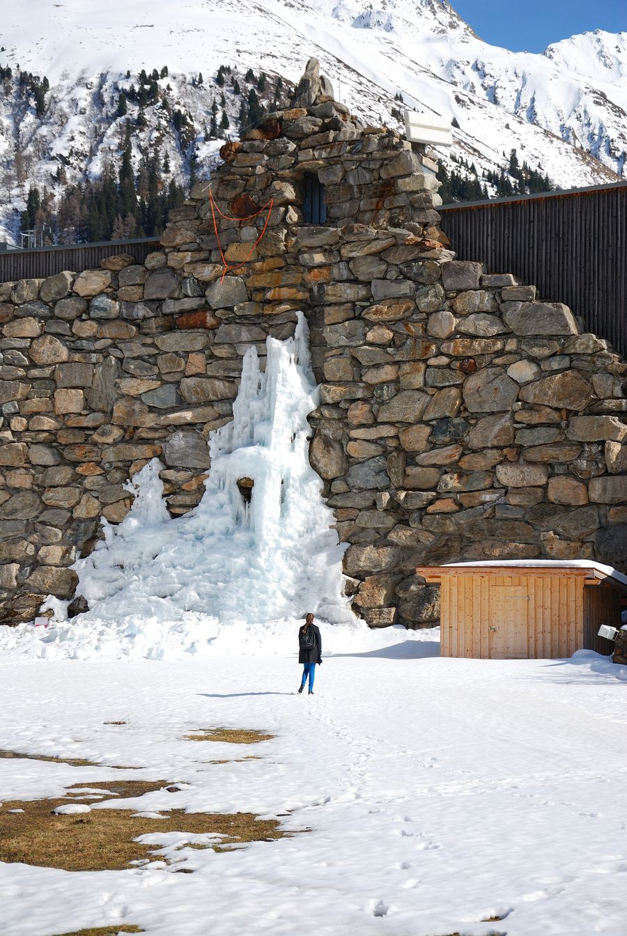 Рис. 14. Противолавинная стена из бетона, стали и камня длиной 345 м и высотой 19 м с музейным комплексом в центре на австрийском горнолыжном курорте Гальтюр. Она была построена после гибели 31 человека под лавиной, сошедшей в феврале 1999 года [14]