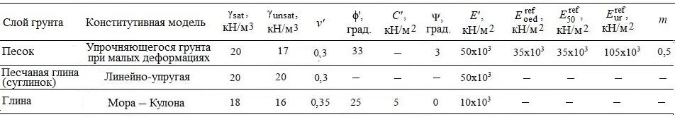 Таблица. Свойства слоев грунта, использованные авторами доклада [1] при моделировании