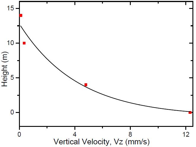 Рис. 4. Изменения вертикальной составляющей виброскорости частиц грунта в зависимости от высоты над сводом тоннеля [1]. По оси абсцисс – вертикальная составляющая виброскорости (мм/c), по оси ординат – высота над сводом тоннеля (м)